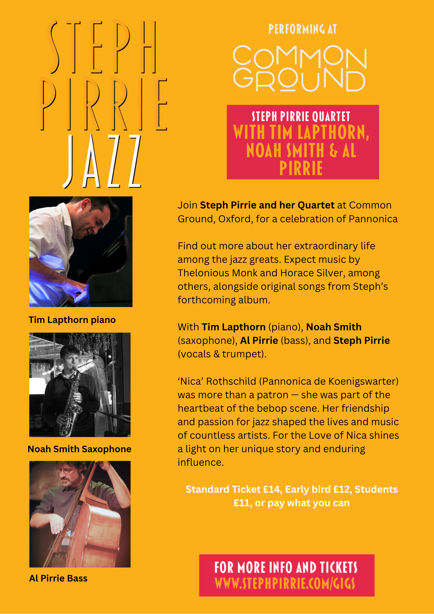 Sept 25 - Steph Pirrie Jazz Quartet @ COMMON GROUND £10 - 14 + concessions - BOOK NOW!